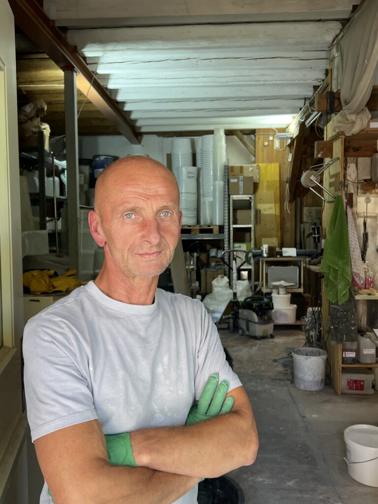 Nach der polnischen Berufsmatur arbeitete Piotr als Mechaniker für Dampf- und Elektrolokomotiven, später als Gärtner. Sein Interesse an neuen Horizonten liess ihn auf Lehr- und Wanderjahre gehen. Mit einem Bauteam arbeitete er in Deutschland, Holland und Dänemark, wo er diverse Aspekte dieser Branche kennenlernte. Ab 1994 machte Piotr mehrere Praktika bei uns: «Hier hat mich die Faszination für die authentischen Materialien und ihre Möglichkeiten gepackt». In England war er als Naturfarbenmaler und Verputzspezialist tätig. Dem begabten Allrounder gefällt an feinraum, dass «der Mensch keine Nummer ist, ebenso wenig wie die Farben und Verputze normiert sind.» Hier verbindet sich seine Liebe für’s Handwerk und die Natur. Bei seinen Wochenendwanderungen stellt Piotr immer wieder fest, «wie sehr die Wolkenbilder und Felswände den gekalkten oder mit Farbpigmenten bemalten Flächen ähneln.»